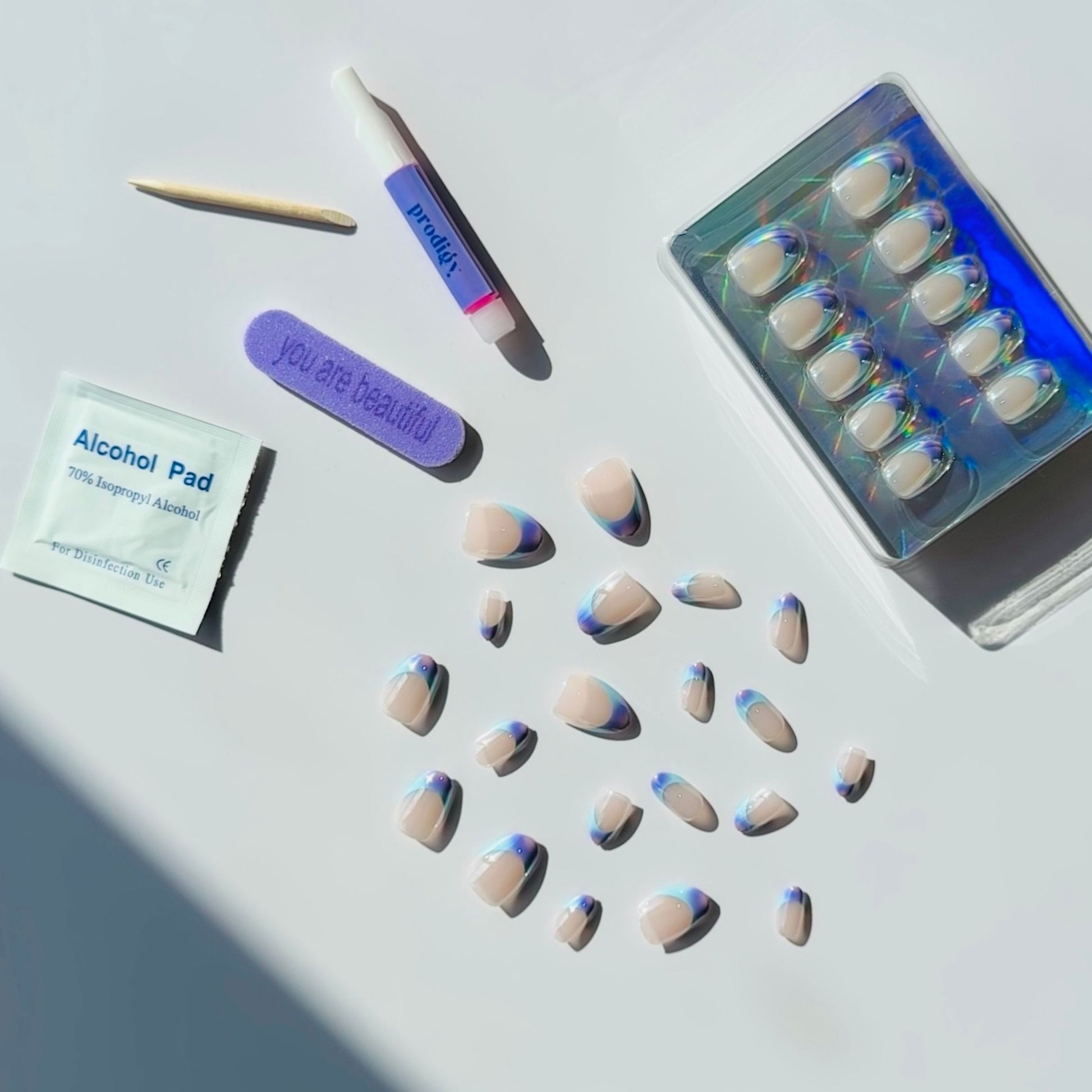 Shape: Short Oval / For the bold and trendy queens - baby blue, purple, and pink french tip.
