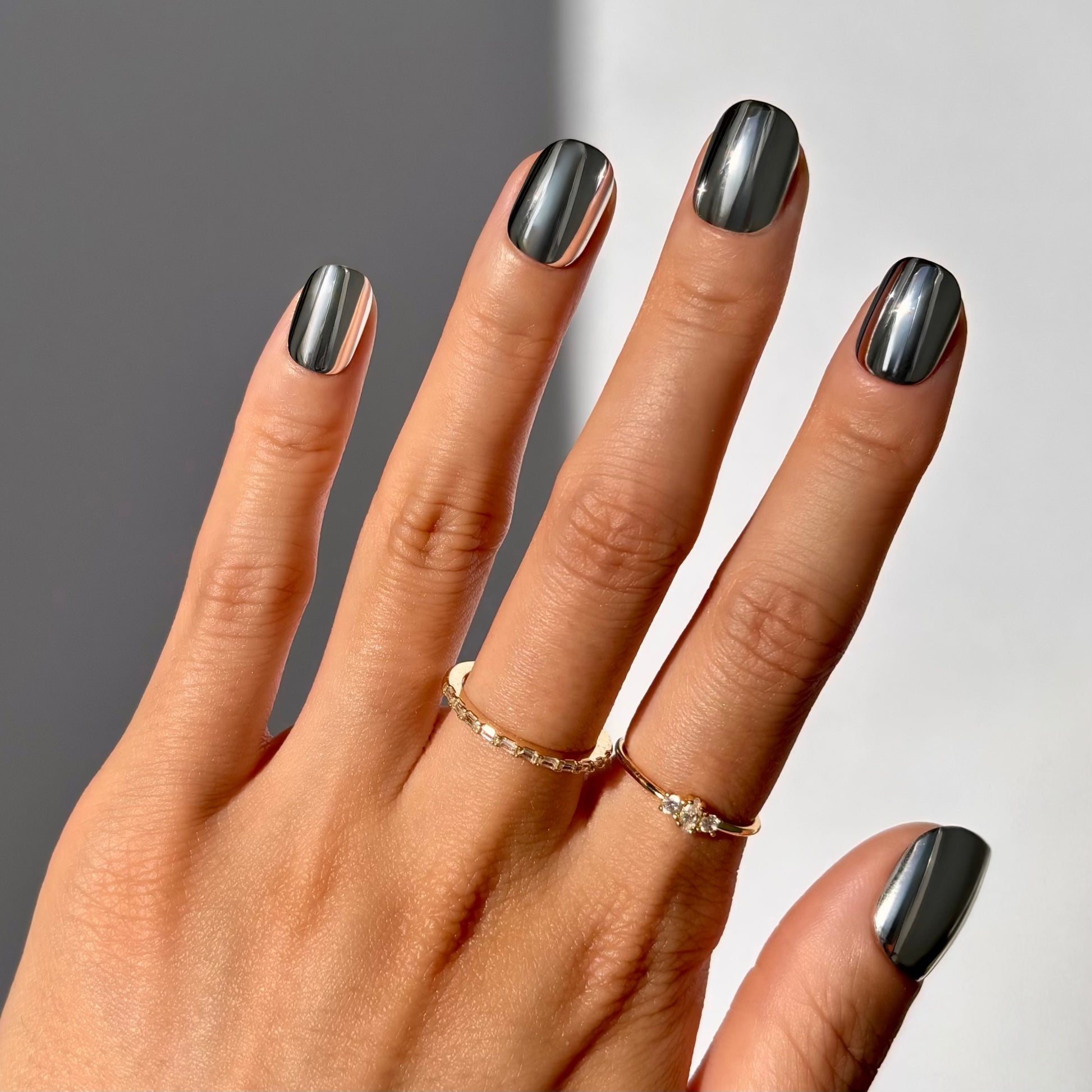 Shape: Short Squoval / Celebrating small moments, because why not - silver, edgy, goal driven.